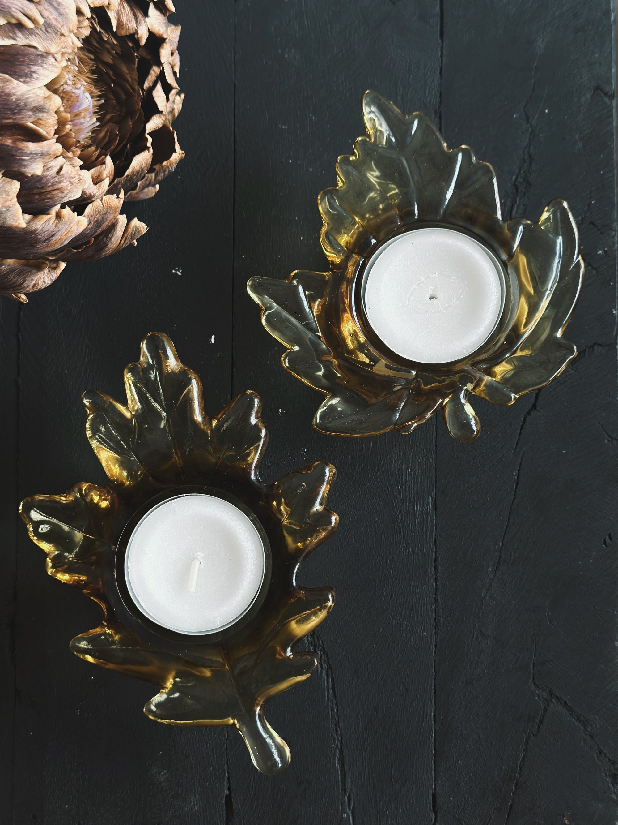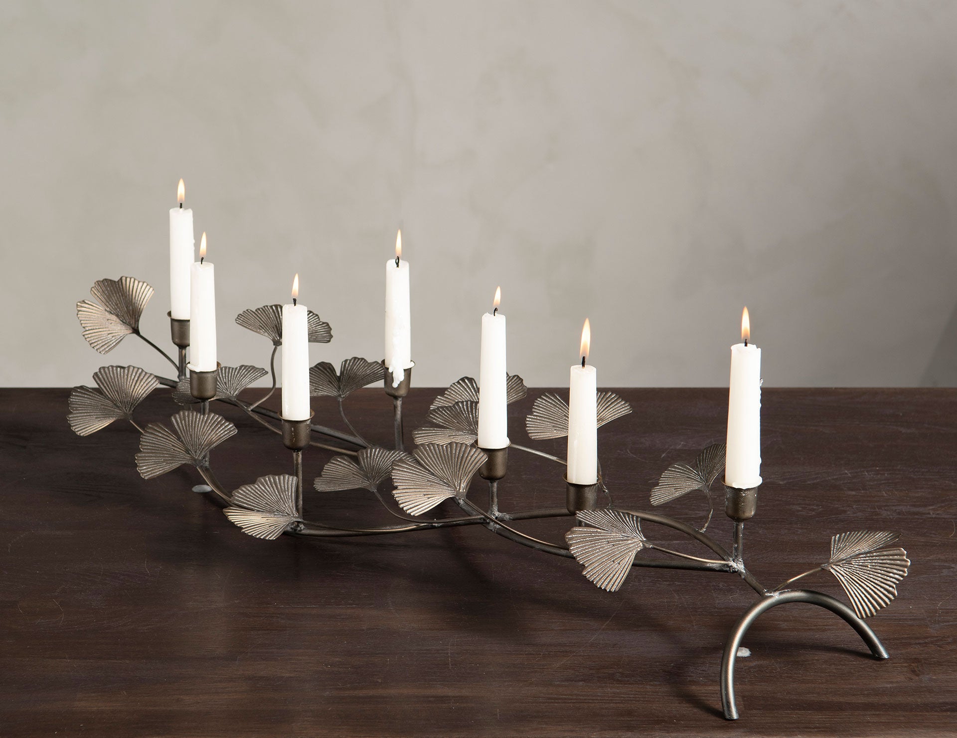 Candle Holder Ginkgo Antique Brown